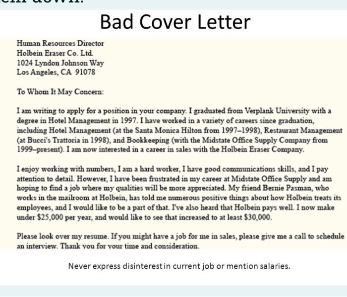 Solved Consider The Following Example Of A Bad Cover Letter Chegg Com